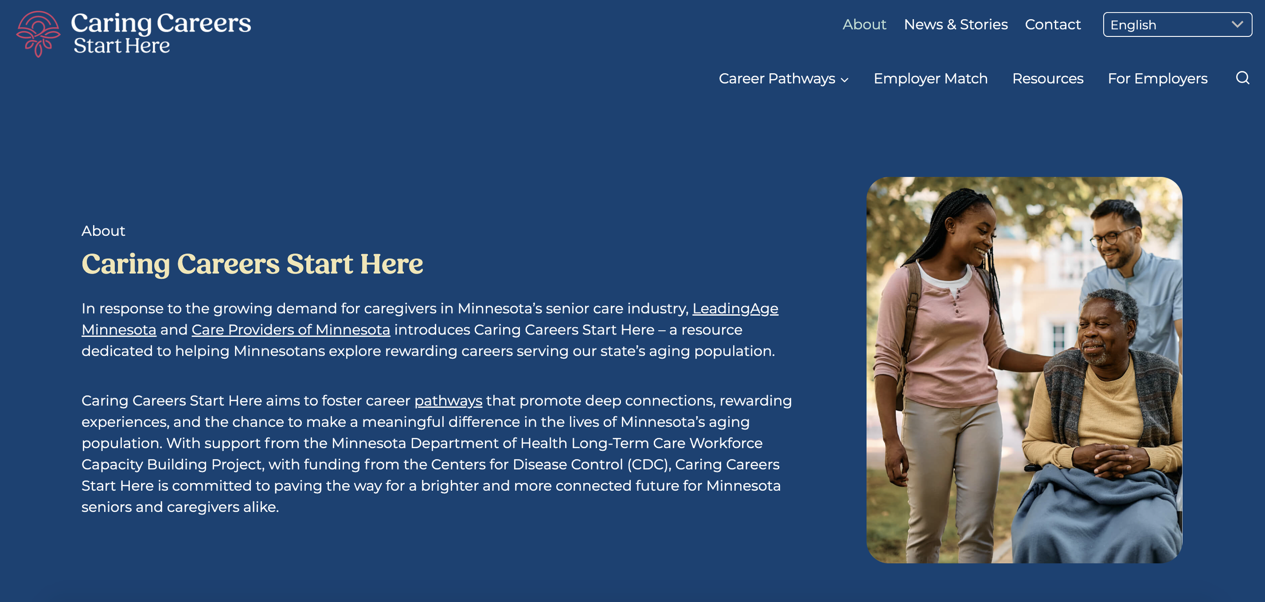 Challenge: Caring Careers Start Here needed compelling website copy to attract job seekers to caregiving roles in Minnesota.